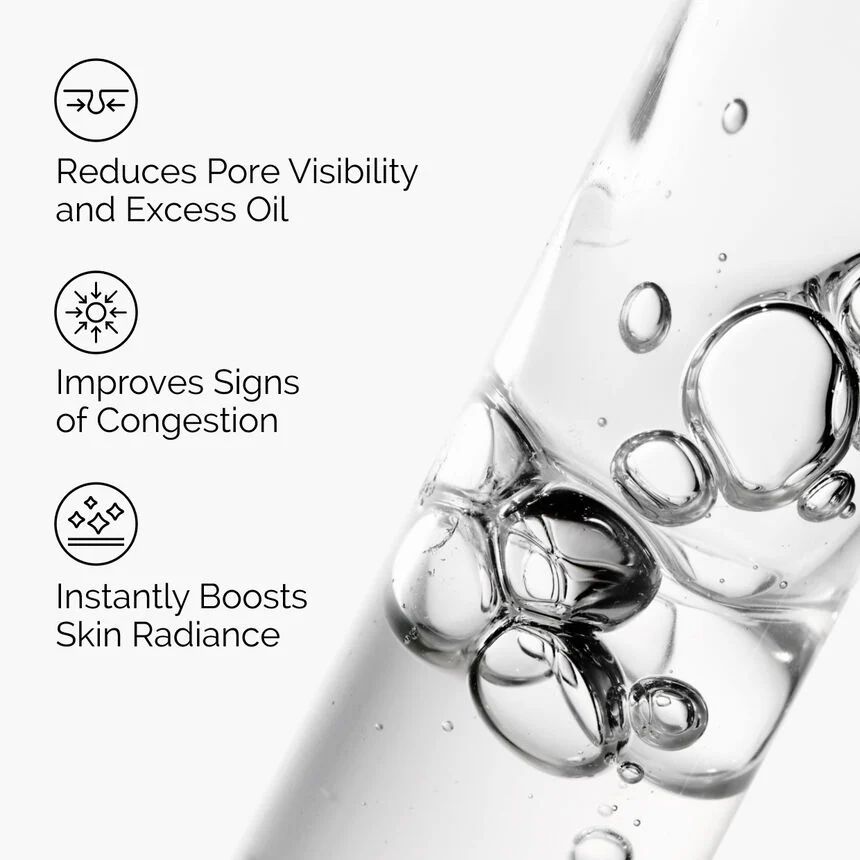 • Reduces the appearance of enlarged pores and refines skin texture